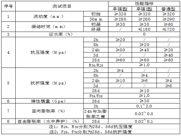 2、具有非常高的小時強度、后期強度高,不收縮。根據不同的施工溫度,2小時即可獲得20-40Mpa的抗壓強度,抗折強度高。