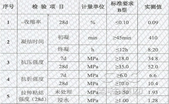 性能指標:JG/T336-2011《混凝土結構修復用聚合物水泥砂漿》I類B型