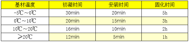 •按照推薦比例配膠,比例為A:B=20:1,25℃可操作時間為5-10分鐘。隨著B劑用量的增加,可操作時間相應縮短。每次配膠量不宜過大,以在可操作時間內用完為準;